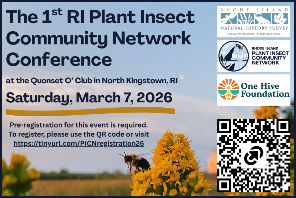 This conference is sponsored by the Plant Insect Community Network, a program of the Natural History Survey that connects the efforts of organizations, programs, and projects that work on pollinators or “pollinator adjacent” topics in Rhode Island to leverage strengths, identify gaps, and raise the profile of the whole community.